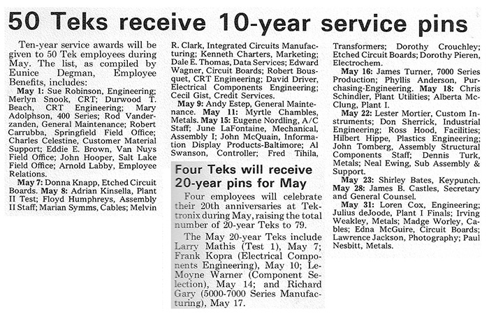 Tektronix Early History (Index)