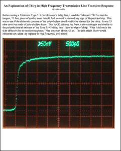 Kerns, Kirsten, and Winningstad at Berkeley came up with the equation for transient response for a skin effect limited delay line (Norm Winningstad later came to Tektronix). An updated version of their original work is at lss.fnal.gov and the resulting rise time calculation of 2.5 pS is specified for the 113 delay line.