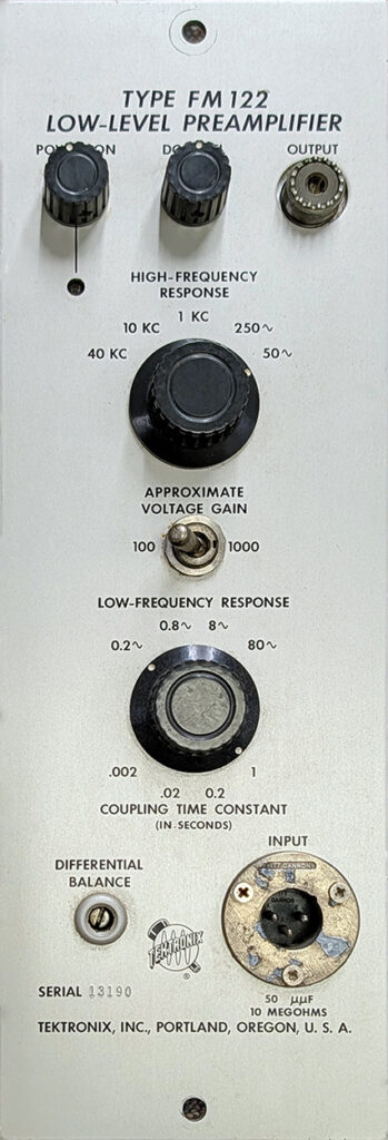 This Type FM 122 Low-Level Preamplifier was also designed to fit into this instrument format.