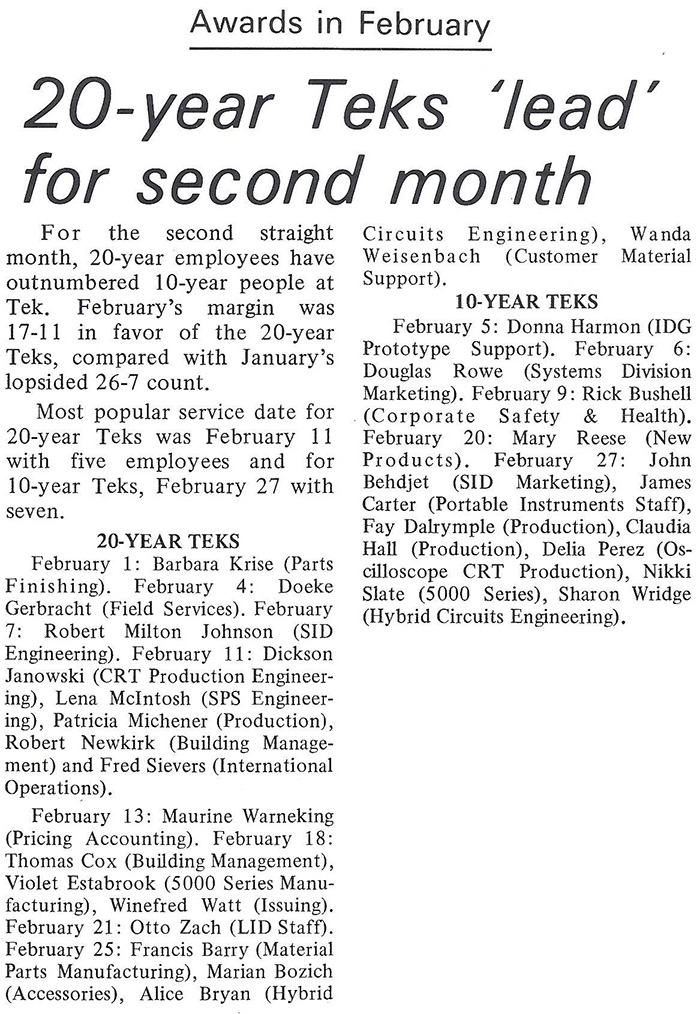 Tektronix Early History (Index)