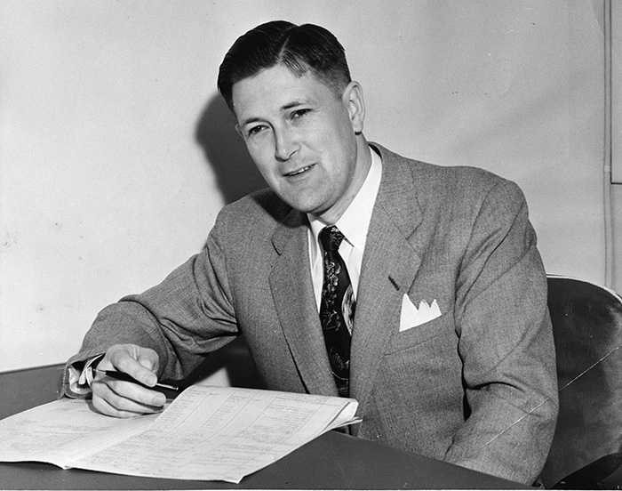 Today is the 100th anniversary of Jack Murdock's birthday. Melvin "Jack" Murdock was born in Portland on August 15, 1917. Jack went by his middle name as did his friend and business partner Charles "Howard" Vollum whom he met in 1936. Together, with Miles Tippery and Glenn McDowell, they formed Tekrad in 1946 and soon changed the name to Tektronix. Jack was the Vice President and General Manager of Tektronix and in 1960 he became Chairman of the Board until his death in 1971. We have a recording of Jack Murdock's presentation to the Portland Chamber of Commerce in November of 1966 where he focuses on the effects of automation on society. You can listen to it on our Audio Gallery. Happy Birthday Jack!