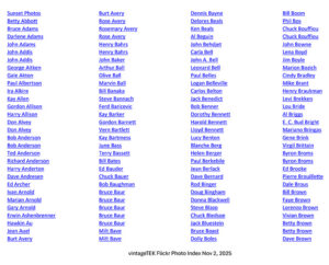 Click on the image below to view the PDF index. Clicking on a name will take you to the photo on Flickr. You will need to use your back button to return to the index.