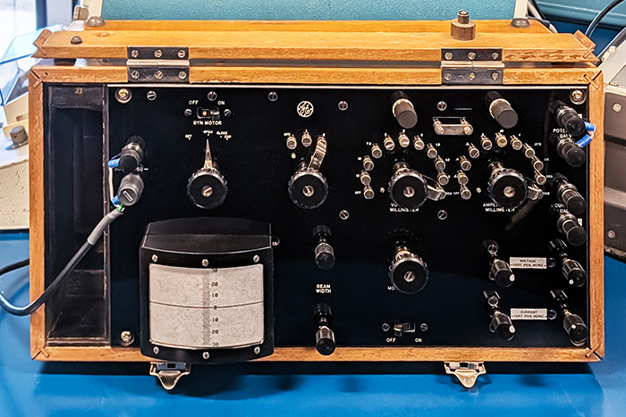 The museum acquired a 100 year old General Electric Oscillograph, model PM-12-A6. The oscillograph is an optical-mechanical instrument for visualizing waveforms. It was originally used in AM radio stations for measuring percent modulation. It has about 10% accuracy and was expensive, costing over $1,000 in 2026 dollars. It has two channels for displaying both voltage and current.