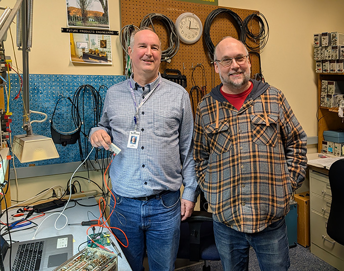 Two visitors from Electronic Design magazine. Portland area based Andy Turudic (left) is a Technology Editor at the magazine. Here's his article on the new 7 Series oscilloscope. [External website]