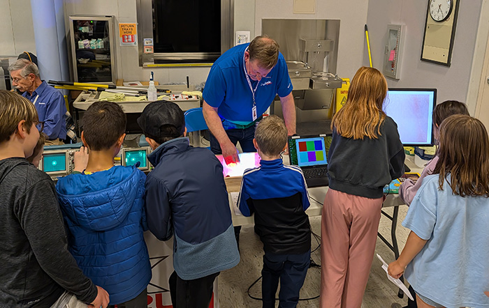 The museum participated in the Sexton Mountain Elementary School Fair. Volunteers were Dave Brown, Bob Dexter, Tom Goodapple, and Gary Johnson. We had two tables so took a number of exhibits. We showed the 4052 Graphics Desktop Computer, our Oscilloscope and microphone to show your voice, our Computer Algorithm / Digitization exhibit, Table Tennis, Oscilloscope Art, and our Flashlight and Color exhibit with our microscope.