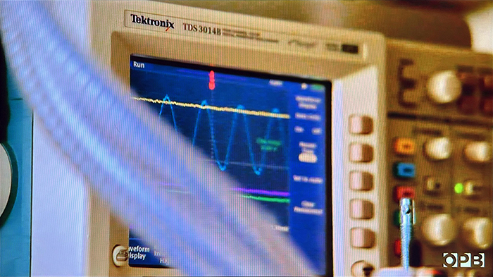 This scene at just over 1:52 shows a Sony/Tek 335 oscilloscope.