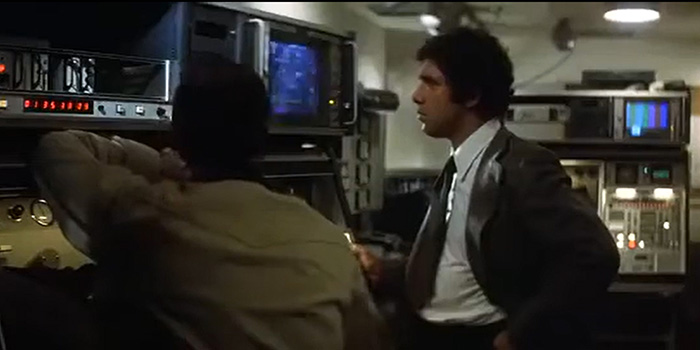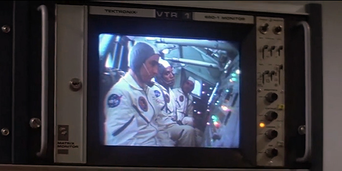 This scene in the 1976 movie Network features Robert DuVall in a control room prominently showing a Tektronix 650 NTSC color video monitor.